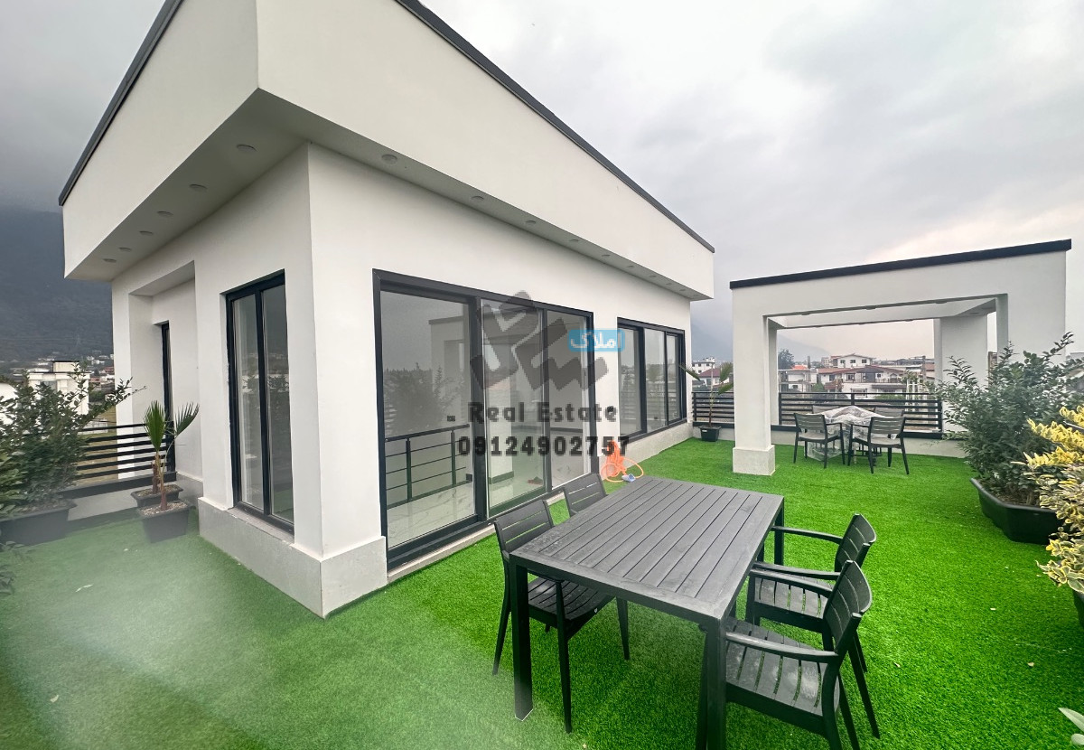 یکی دیگر از ویژگیهای کمیاب این ملک، روف گاردن شیک با ویو ابدی جنگل و دریاست. جایی که میتوانی در آرامش محض، روی صندلیهای راحتی بنشینی، چای تازهدم بخوری و غروب خورشید را تماشا کنی. آلاچیق روی روف این تجربه را کامل میکند؛ یک نقطه دلنشین برای دورهمیهای دوستانه، عکاسی یا حتی لحظات تنهایی که میخواهی فقط برای خودت باشی.
