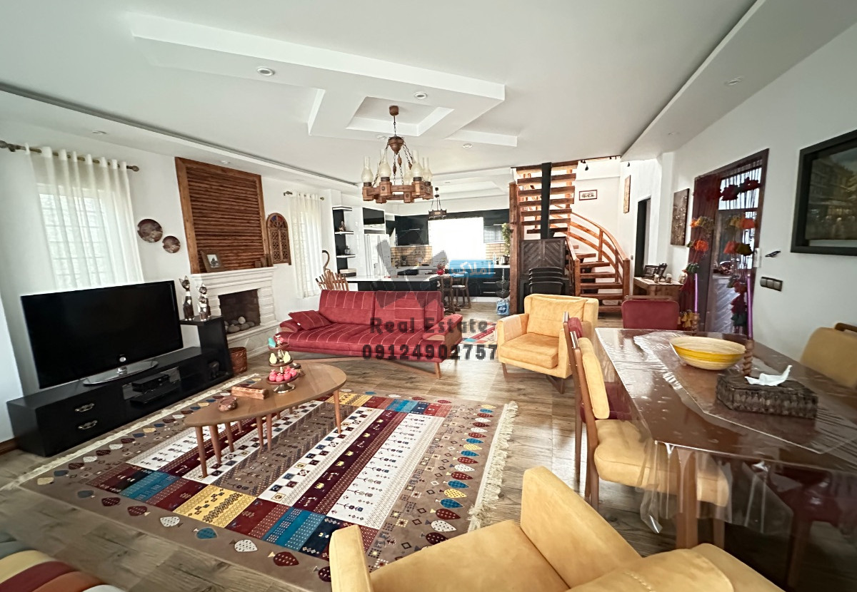 این ویلا دارای 200 متر بنای دوبلکس سهخوابه بوده و روی 323 متر زمین واقع شده است. طراحی داخلی با سقف چوبی و سقف شیروانی، فضایی گرم و دلنشین ایجاد کرده که در کنار نورگیری مناسب، حس زندگی لوکس اما صمیمی را منتقل میکند. حیاطسازی حرفهای و فضای سبز سرسبز، محیطی ایدهآل برای دورهمیهای خانوادگی فراهم کرده است.